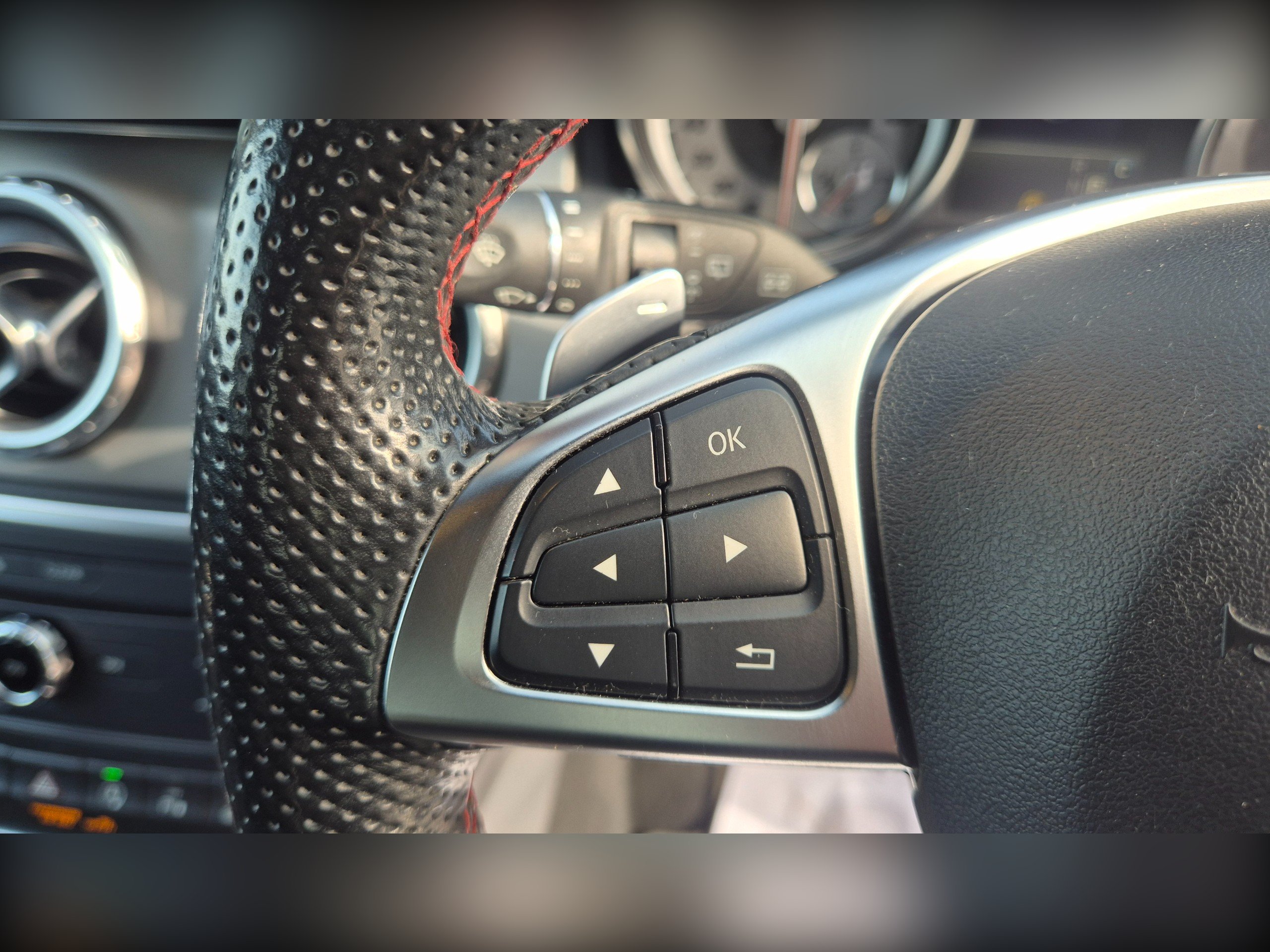 - Steering Wheel - 3-Spoke - 12 Button Multi-Function - Trimmed in Nappa Leather with Perforated Leather in Grip Area - Flattened Bottom Section